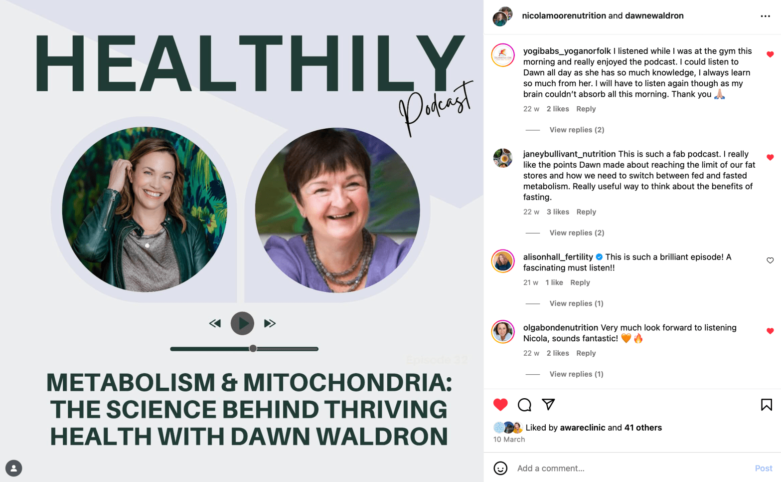 What if the key to a thriving metabolism lies deep inside your cells? In this episode, I sit down with nutritional therapist Dawn Waldron, whose personal journey as a breast cancer survivor has led her to explore metabolism through the fascinating world of mitochondrial health. We dive into the real reasons why fasting, exercise, andContinue reading "On the Healthily Podcast with Nicola Moore"
