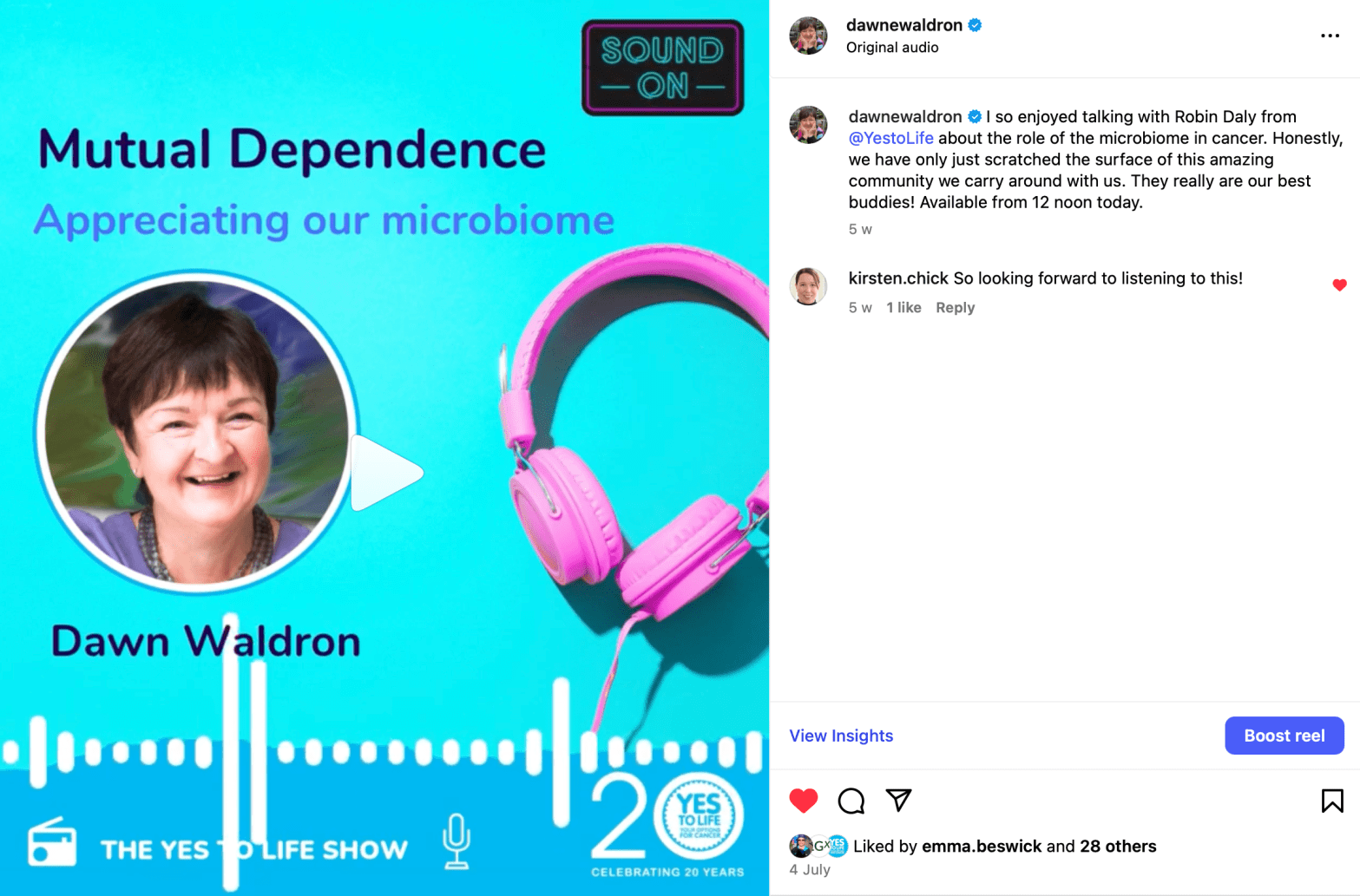 I so enjoyed talking with Robin Daly from @YestoLife about the role of the microbiome in cancer. Honestly, we have only just scratched the surface of this amazing community we carry around with us. They really are our best buddies! Available from 12 noon today. https://ukhealthradio.com/blog/episode/mutual-dependence-dawn-waldron-speaks-about-the-increasing-respect-in-science-for-the-role-of-the-microbiome-in-our-health/